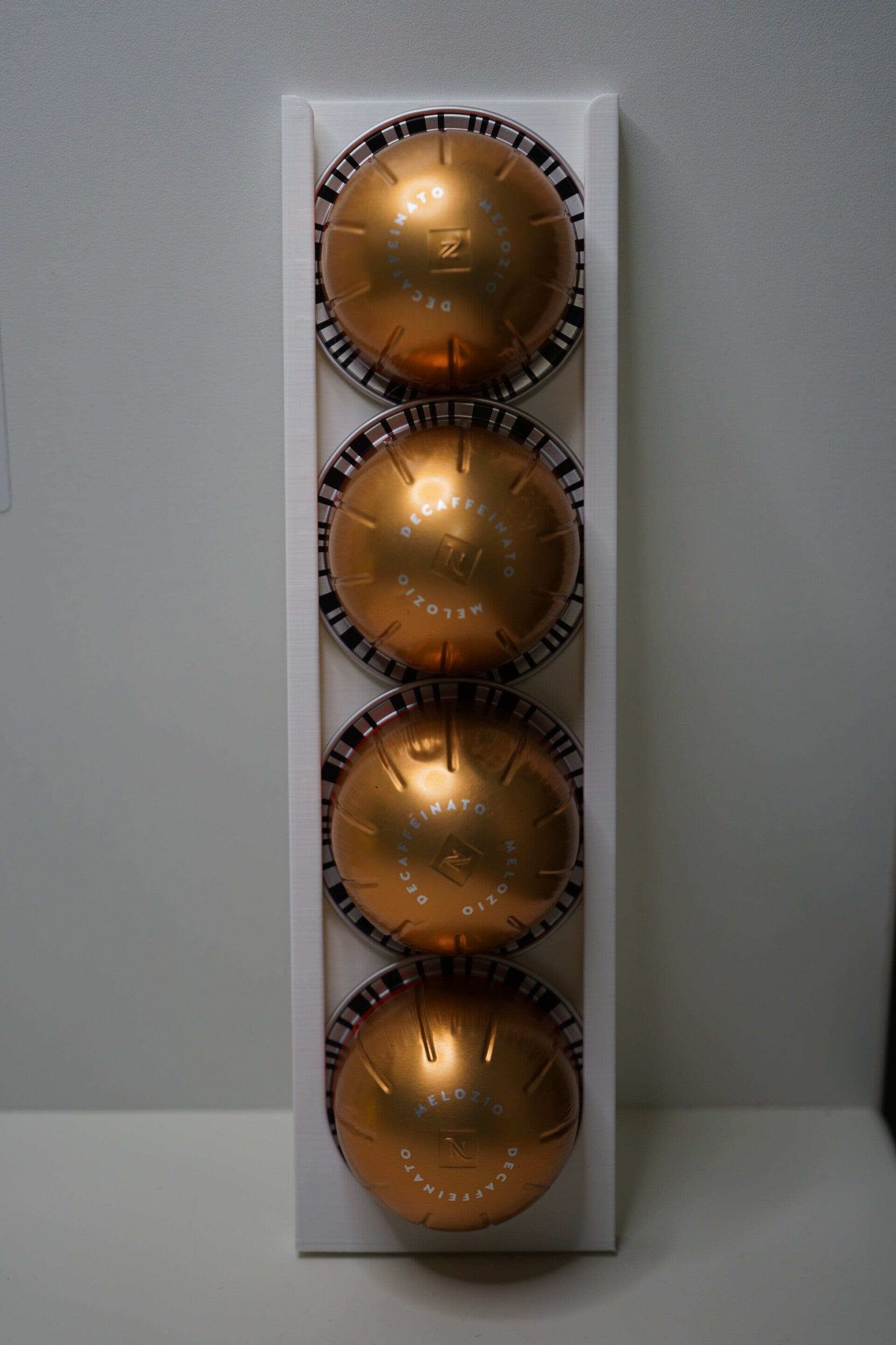 Dieser Nespresso Vertuo Kaffeekapselhalter ist eine platzsparende Lösung zur Aufbewahrung von bis zu 4 Kapseln. Dank seines funktionalen Designs kann er an der Wand oder unter einem Schrank montiert werden, sodass Ihre Kaffeekapseln stets griffbereit und ordentlich aufbewahrt sind. Ideal für Kaffeeliebhaber, die Wert auf eine stilvolle und praktische Organisation legen.