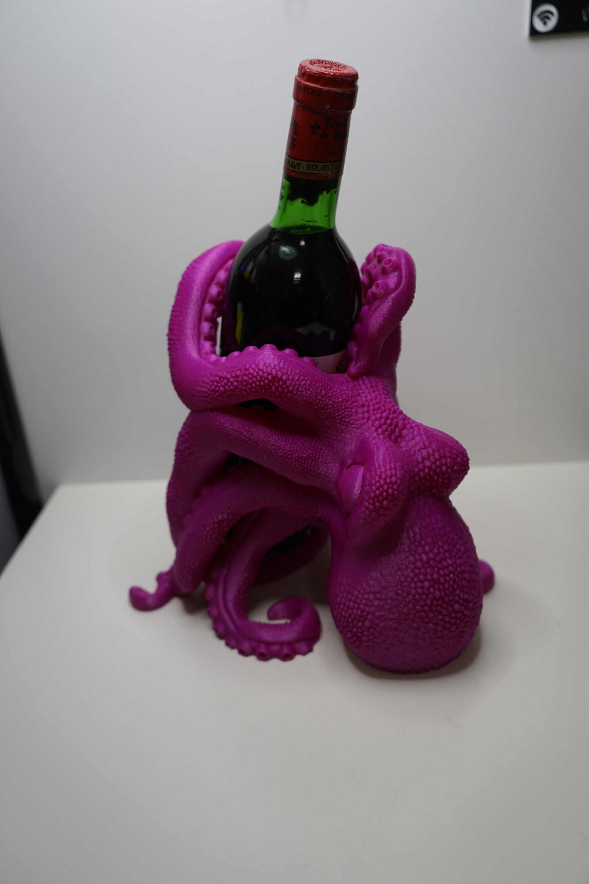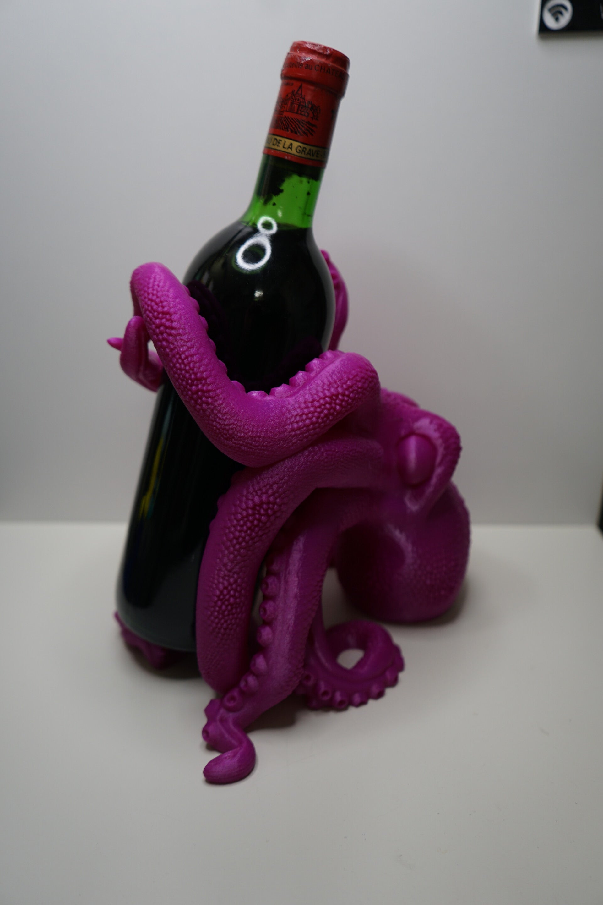 Dieses beeindruckende Design zeigt einen Oktopus, der eine Flasche elegant umschließt und festhält. Der Ständer ist ideal für 75-cl-Weinflaschen und dient als stilvolles und einzigartiges Dekorationsstück. Perfekt für Weinliebhaber oder als außergewöhnliches Geschenk. (Flasche nicht im Lieferumfang enthalten.)