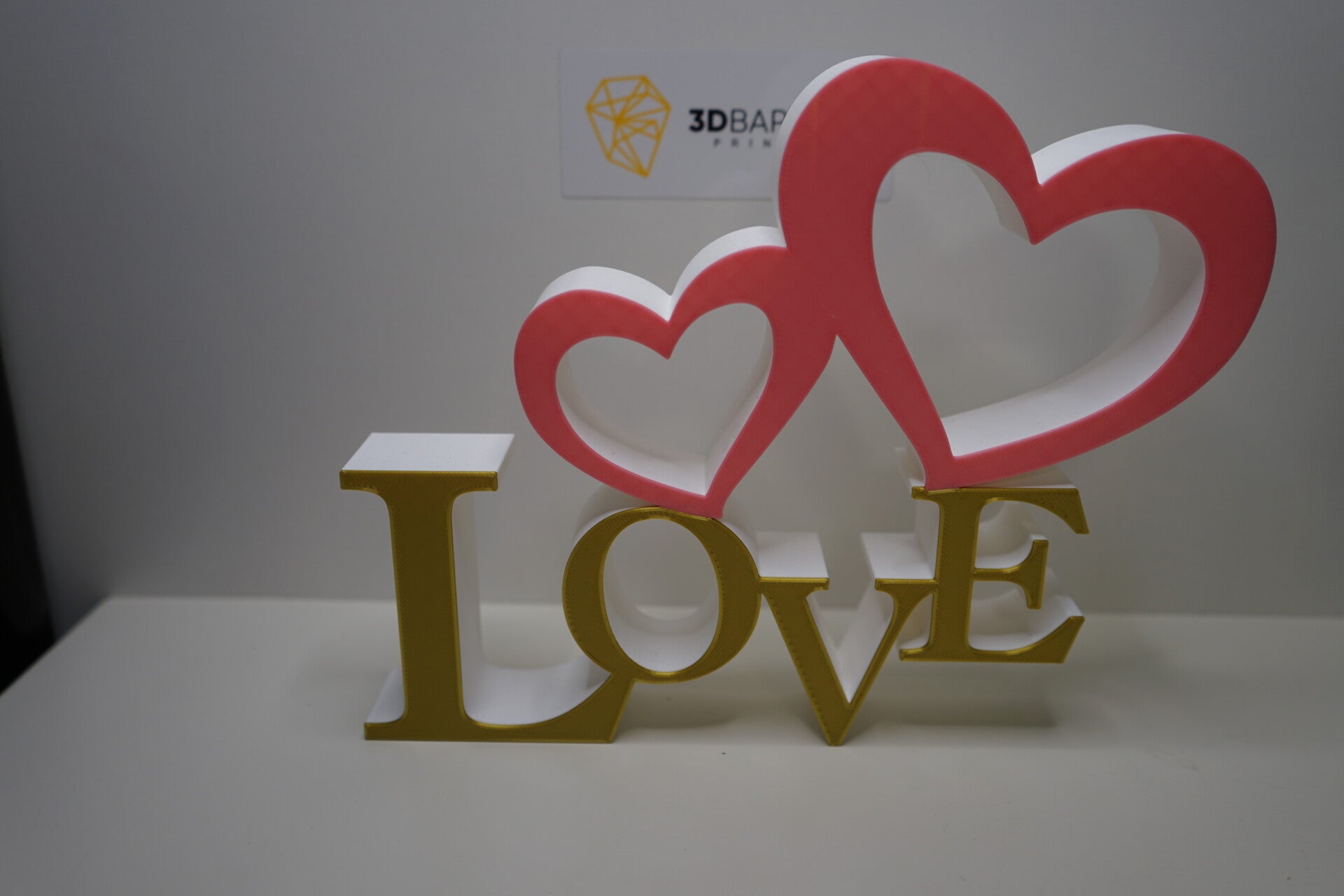 Dieses „Love“-Schild mit Herzen hat eine Höhe von 17,9 cm, eine Breite von 22,5 cm und eine Tiefe von 2,5 cm. Die stilvolle Kombination aus goldenen Buchstaben und rosafarbenen Herzen verleiht dem Design eine elegante und romantische Note. Die zwei schwebenden Herzen über dem Schriftzug symbolisieren Liebe und Verbundenheit, wodurch dieses Dekorationsstück perfekt als Geschenk oder Hingucker für besondere Anlässe geeignet ist. đź’–