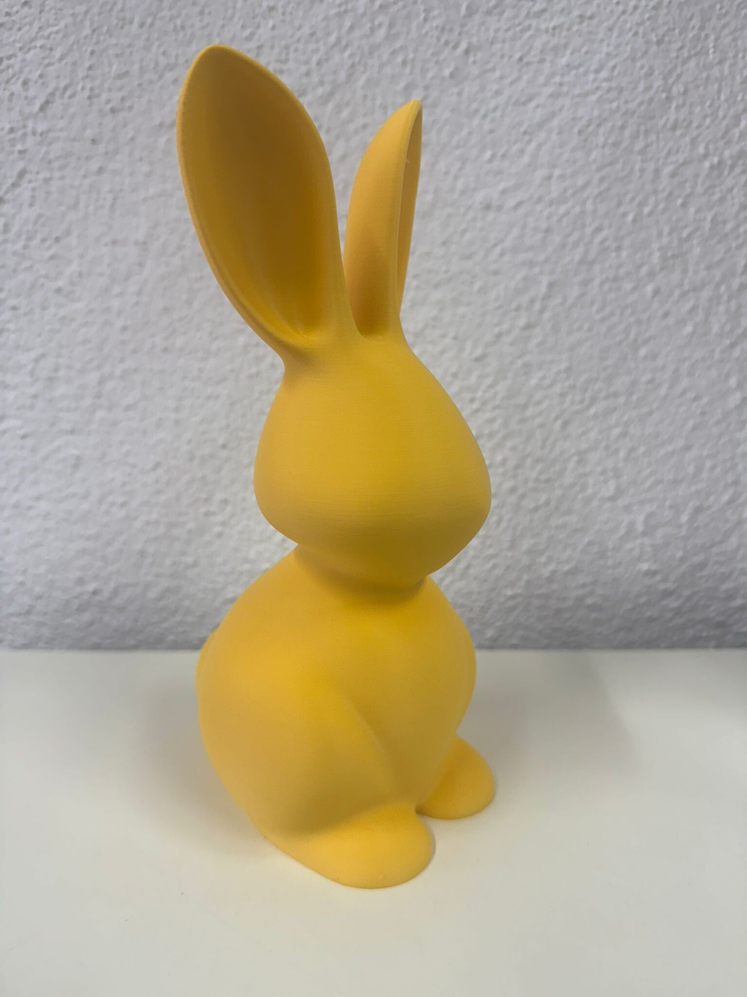 Diese moderne Hasenfigur in elegantem Gelb ist eine stilvolle Dekoration, die besonders in der Frühlings- und Osterzeit für eine freundliche und frische Atmosphäre sorgt. Mit ihrem minimalistischen Design, den langen Ohren und den weichen, runden Formen wirkt die Figur zugleich verspielt und modern.