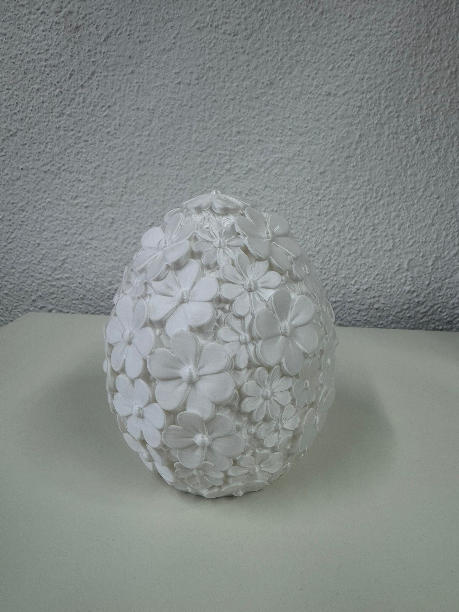 Dieses dekorative Osterei mit floralem Muster ist eine elegante und zugleich praktische Frühlingsdekoration. Die Oberfläche des Eis ist mit vielen filigranen Blüten verziert, die dem Design eine besondere Tiefe und eine romantische, natürliche Ausstrahlung verleihen.